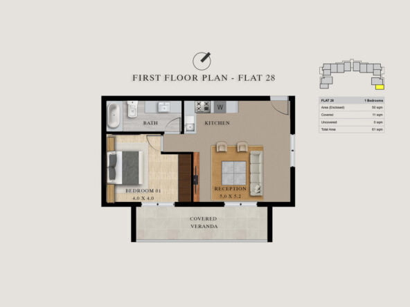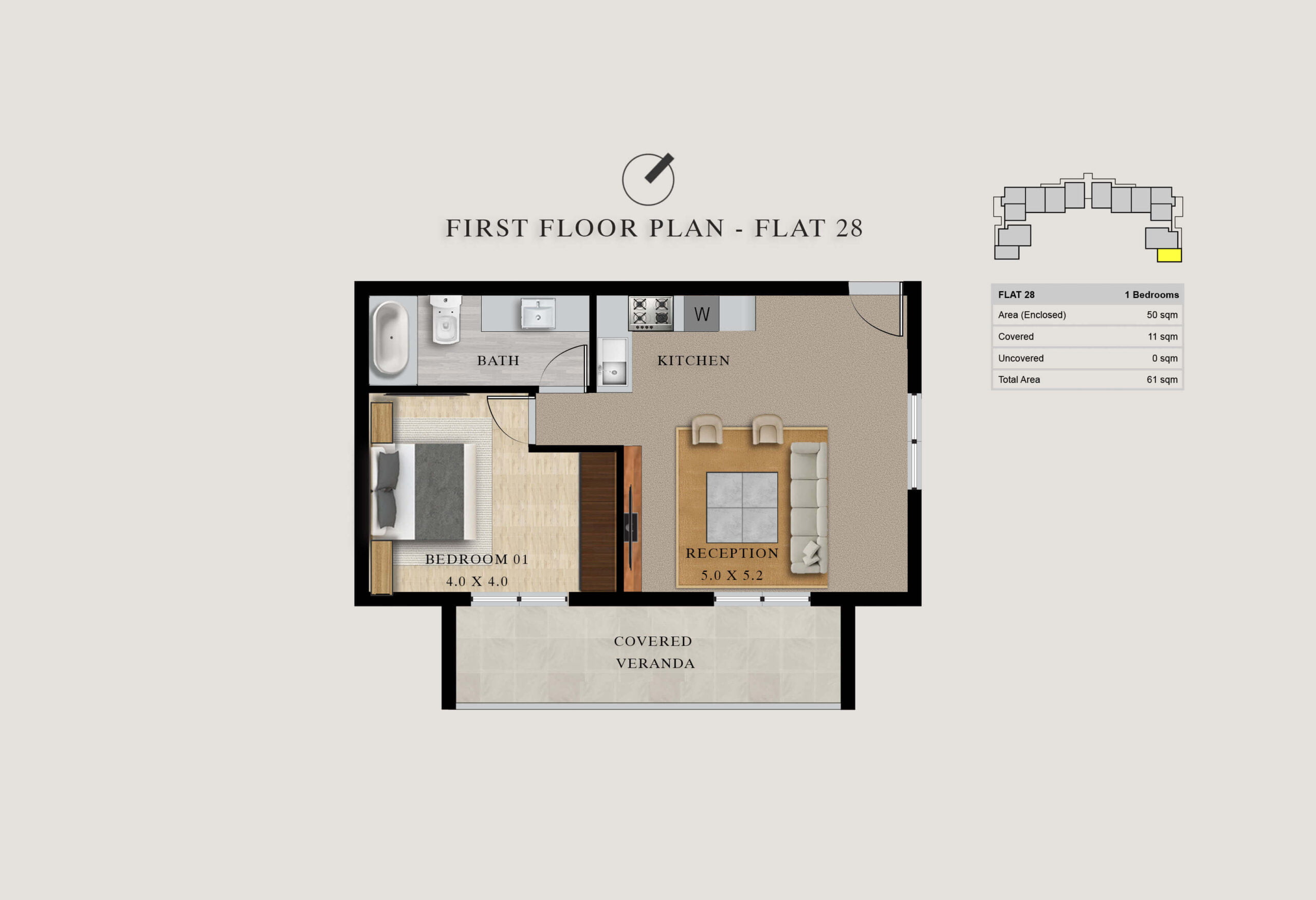 דירה מפנקת וייחודית עם חדר שינה אחד , הכוללת מרפסת המשקיפה למרחב הפתוח .כולל פאנלים סולאריים לצריכת החשמל הפרטית של הדירה , דבר המוזיל משמעותית את חשבון החשמל שנחשב יקר מאד בקפריסין.