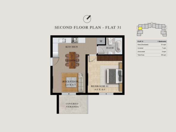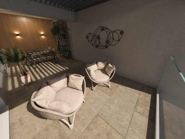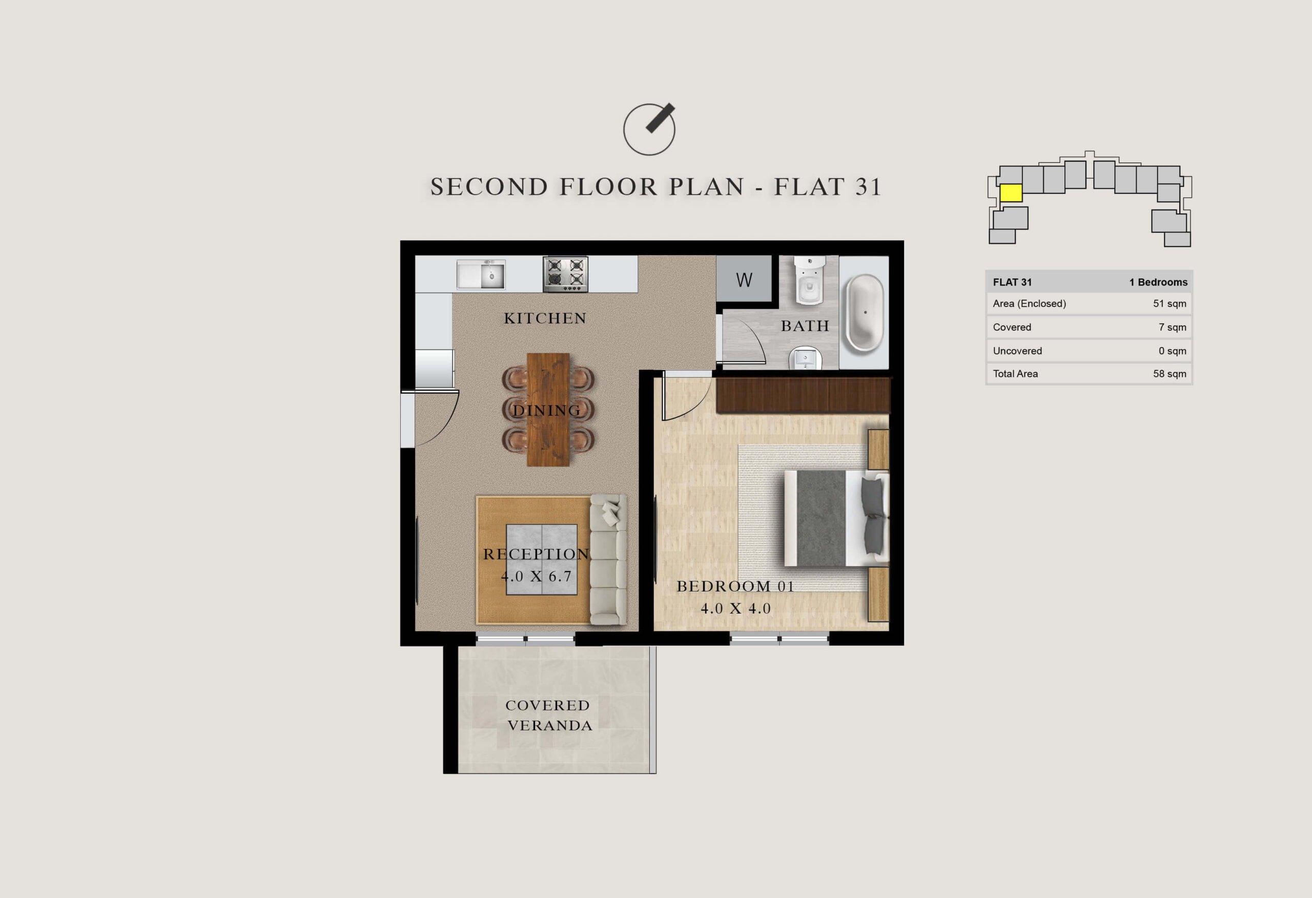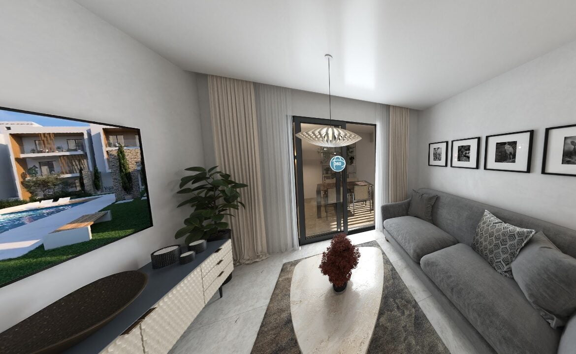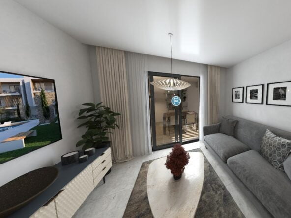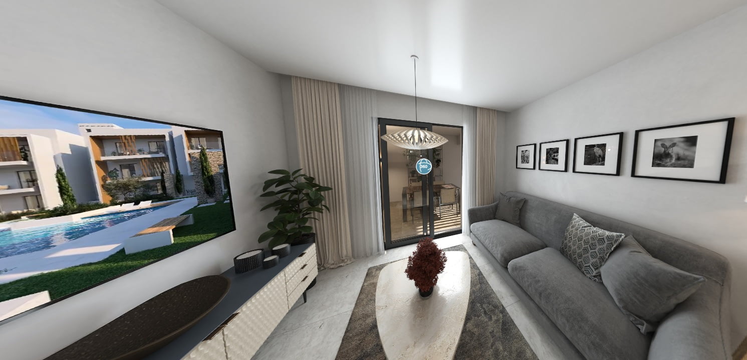דירה מפנקת וייחודית עם חדר שינה אחד , הכוללת מרפסת  חמודה הפונה למרכז המתחם  .כולל פאנלים סולאריים לצריכת החשמל הפרטית של הדירה , דבר המוזיל משמעותית את חשבון החשמל שנחשב יקר מאד בקפריסין.