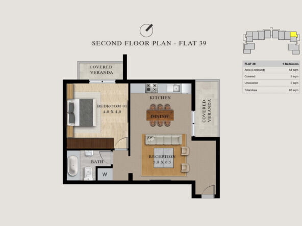דירה מפנקת וייחודית עם חדר שינה אחד , הכוללת 2 מרפסות פרטיות המשקיפות למרחב הפתוח .כולל פאנלים סולאריים לצריכת החשמל הפרטית של הדירה , דבר המוזיל משמעותית את חשבון החשמל שנחשב יקר מאד בקפריסין.