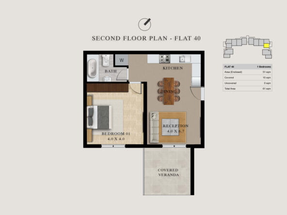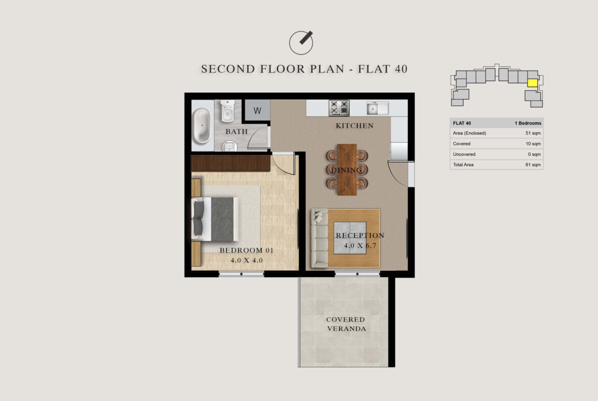 דירה  מפנקת וייחודית עם חדר שינה אחד , הכוללת מרפסת  חמודה הפונה למרכז המתחם  .כולל פאנלים סולאריים לצריכת החשמל הפרטית של הדירה , דבר המוזיל משמעותית את חשבון החשמל שנחשב יקר מאד בקפריסין.